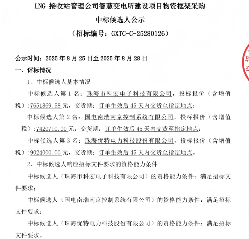 近日,在國家管網(wǎng)集團深圳天然氣有限公司--LNG接收站管理公司智慧變電所建設項目招標中,